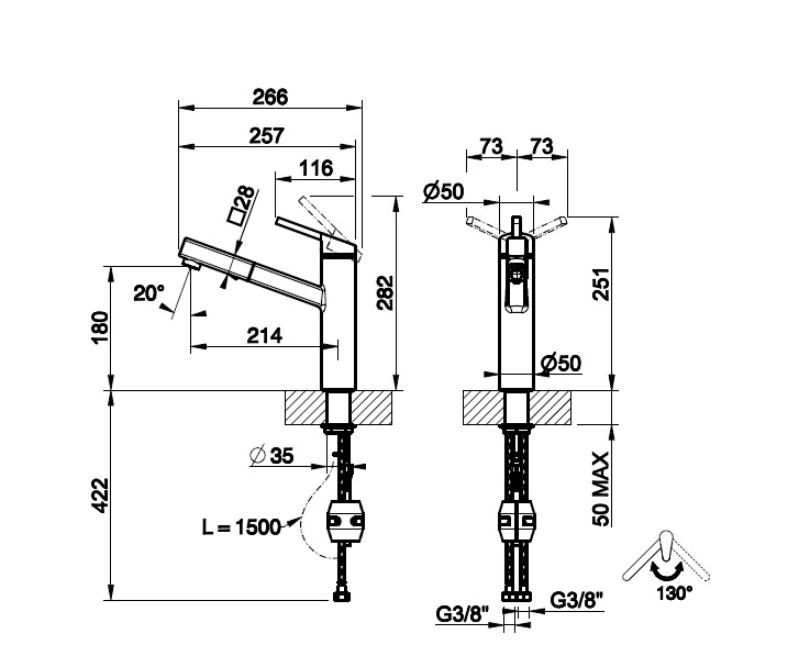 Змішувач для кухні Gessi Thalium з висувною лійкою нержавіюча сталь 60535#149