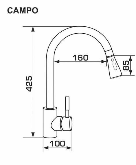 Висота 425 мм і ширина (подовження) 160 мм - параметри, які роблять змішувач придатним для будь-якого розміру вашої врізної мийки. А якщо ваша гранітна мийка має велику чашу або дві, GRANADO CAMPO стане просто ідеальним рішенням.