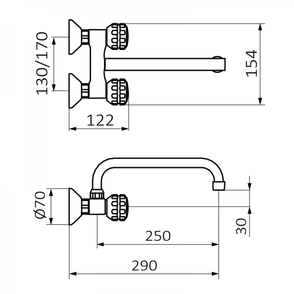 1) Змішувач для кухні GRB Cocinas настінний двухвентильний хром