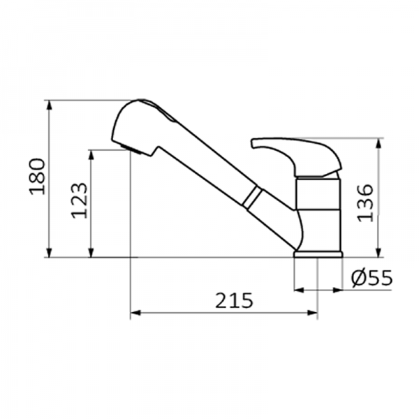 - Висота змішувача, мм: 180