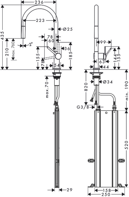 - короб sBox для тихого, плавного, безпечного переміщення шланга в кухонній шафі, під стільницею; подовження шланга - до 76 см
