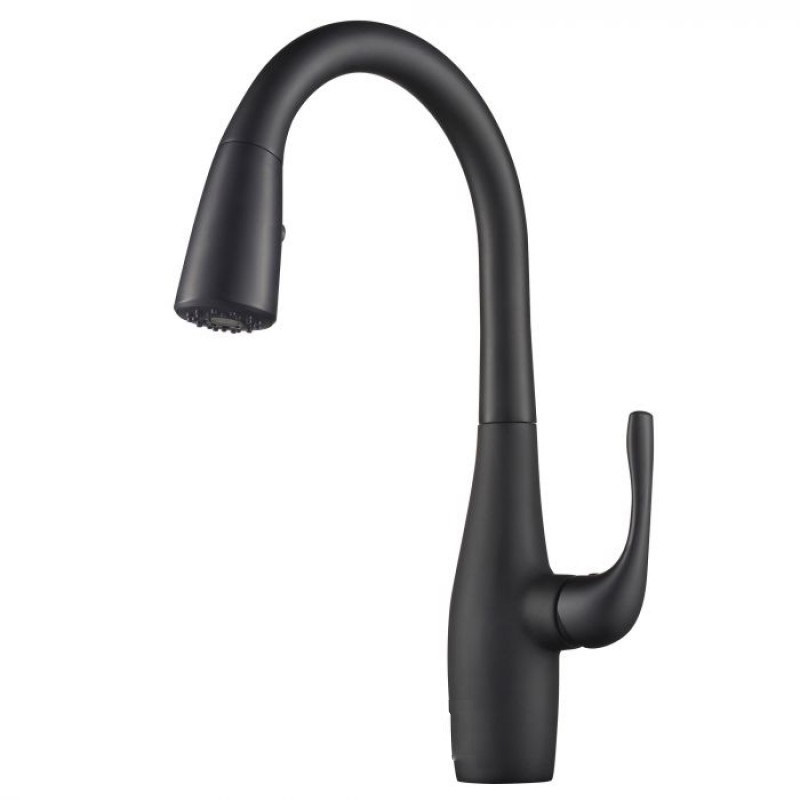 Змішувач для кухні Kraus Esina одноважільний з висувним виливом чорний матовий KPF-1670MB