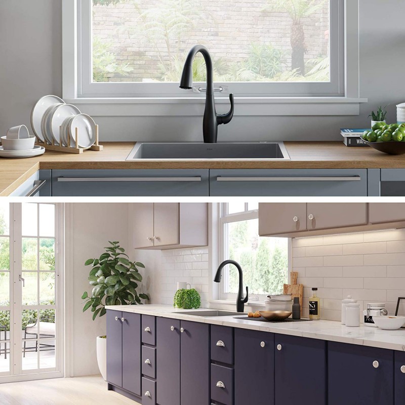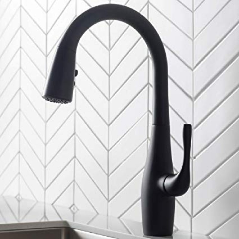 1) Змішувач для кухні Kraus Esina змішувач з висувним виливом чорний матовий