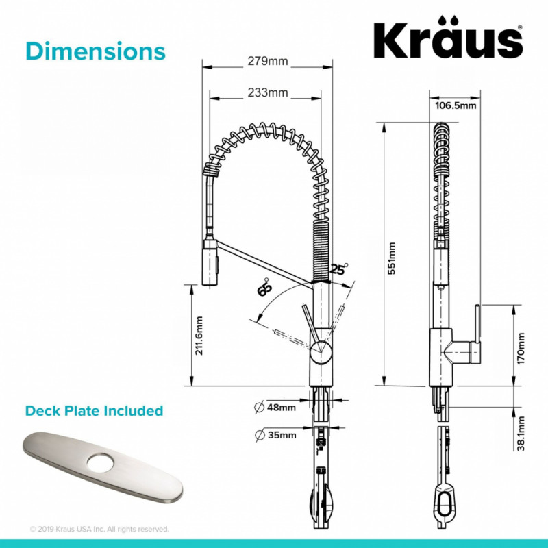 - Сучасний стиль кухні: Професійний зовнішній вигляд із зручністю плавного висувного шланга довжиною 35 см з розпилювальною головкою на лійці.