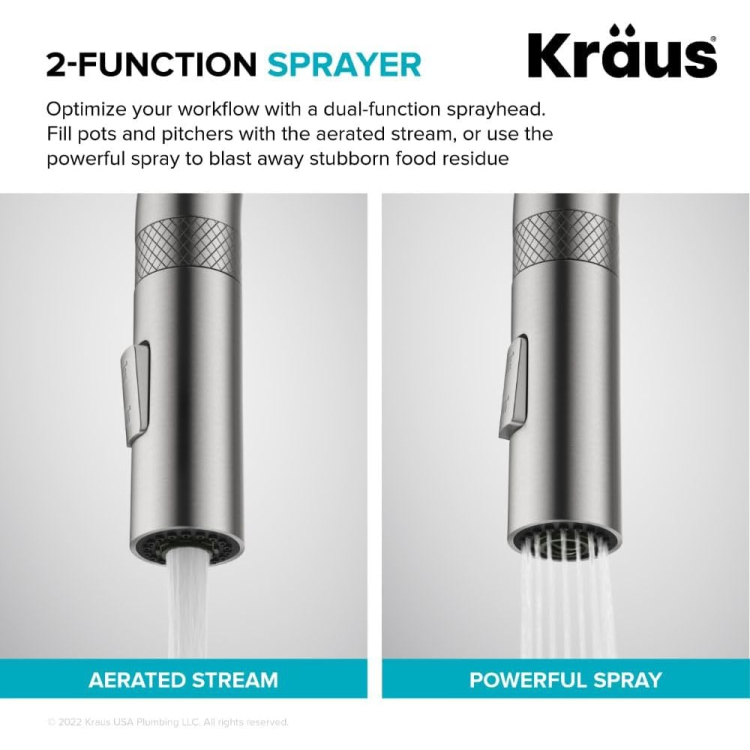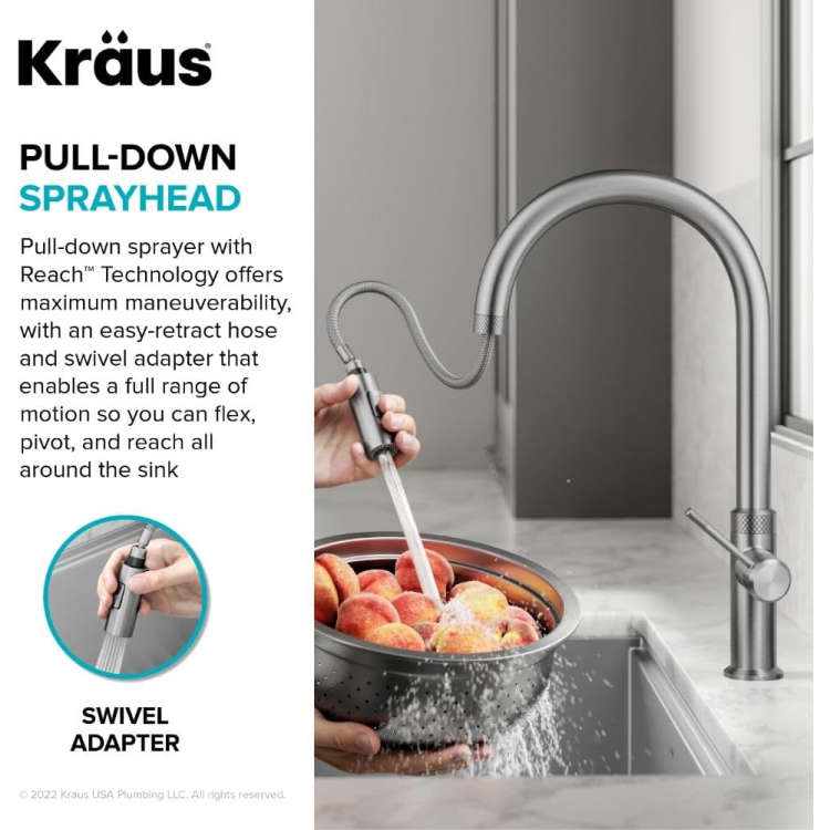 Поспішайте купити Змішувач для кухні Kraus Oletto з висувною лійкою сатин KPF-2654SFS за акційною ціною.