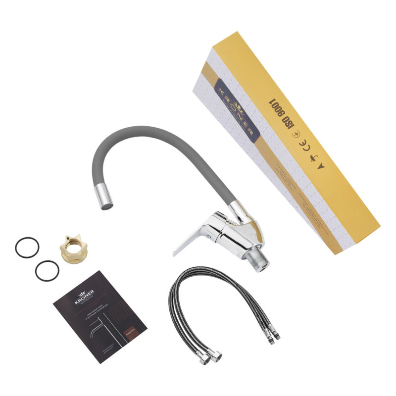 Змішувач кухонний Kroner KRM Odra-C032GRA одноважільний хром/сірий