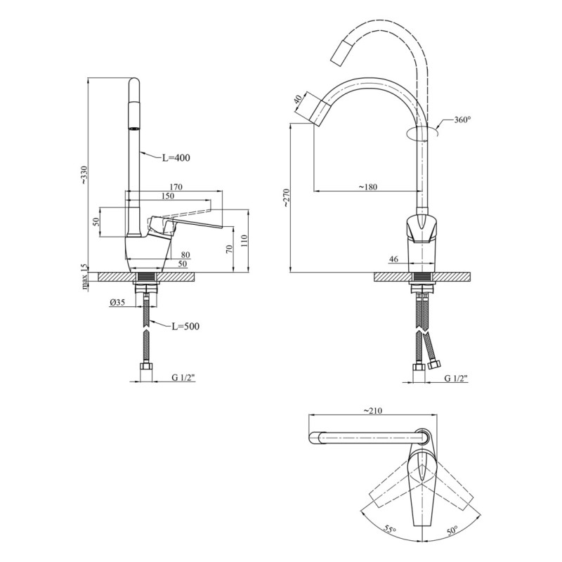 Змішувач для кухні Kroner KRM Odra-C032GRA одноважільний хром/сірий CV023772