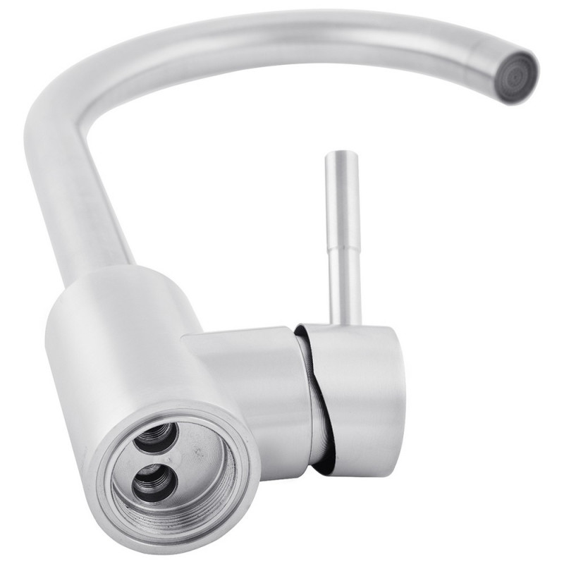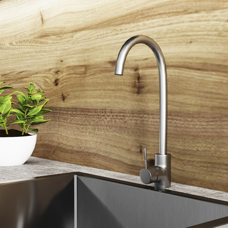 Кухонний змішувач Kroner KRP Edelstahl Klassisch - ESG035 ідеальний вибір для вашої кухні. Виготовлений з нержавіючої сталі, гарантує міцність і довговічність. Володієпривабливий колір матового нікелю, який додає йому елегантності. Змішувач оснащений картриджним змішувальним механізмом, який дозволяє зручно регулювати температуру води. Його унікальний U-подібний носик дозволяє легко наповнювати посуд або мити їжу. Насолоджуйтесь функціональністю та стилем змішувача Kroner.
