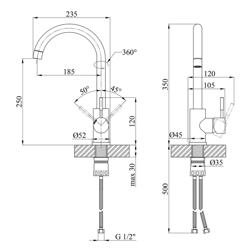 Змішувач кухонний Kroner KRP Edelstahl Klassisch-ESG035 одноважільний нікель