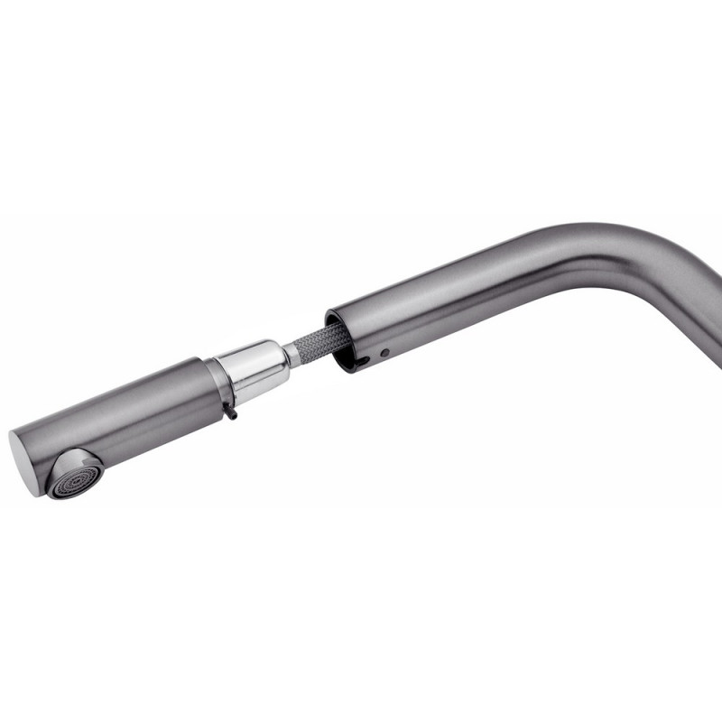 Змішувач для кухні Kroner KRP Edelstahl Klassisch-PVD03918V з висувним виливом графітовий