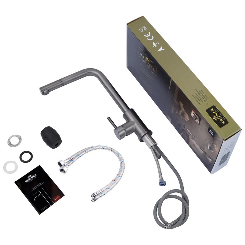 Змішувач для кухні Kroner KRP Edelstahl Klassisch-PVD03918V з висувним виливом графіт CV032285