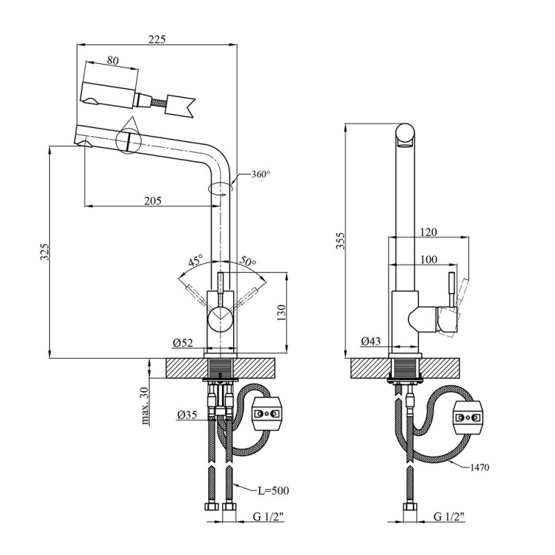 - Висувний і поворотний носик: забезпечує зручність використання та збільшує робочий простір на кухні.