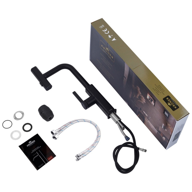Змішувач для кухні Kroner KRP Edelstahl Klassisch-SCH03918 з висувним виливом чорний CV032500