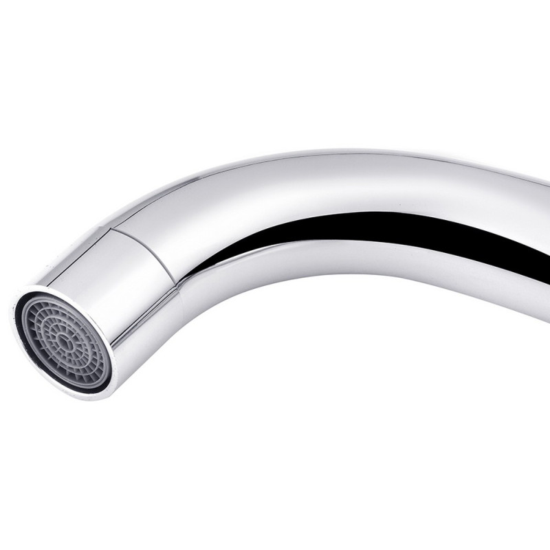 Змішувач має поворотний носик, що надає йому унікальну гнучкість при митті великого посуду та наповненні ємностей водою. Рівномірності сприяє встановлений на носику аераторрозподіл води та економія її споживання.