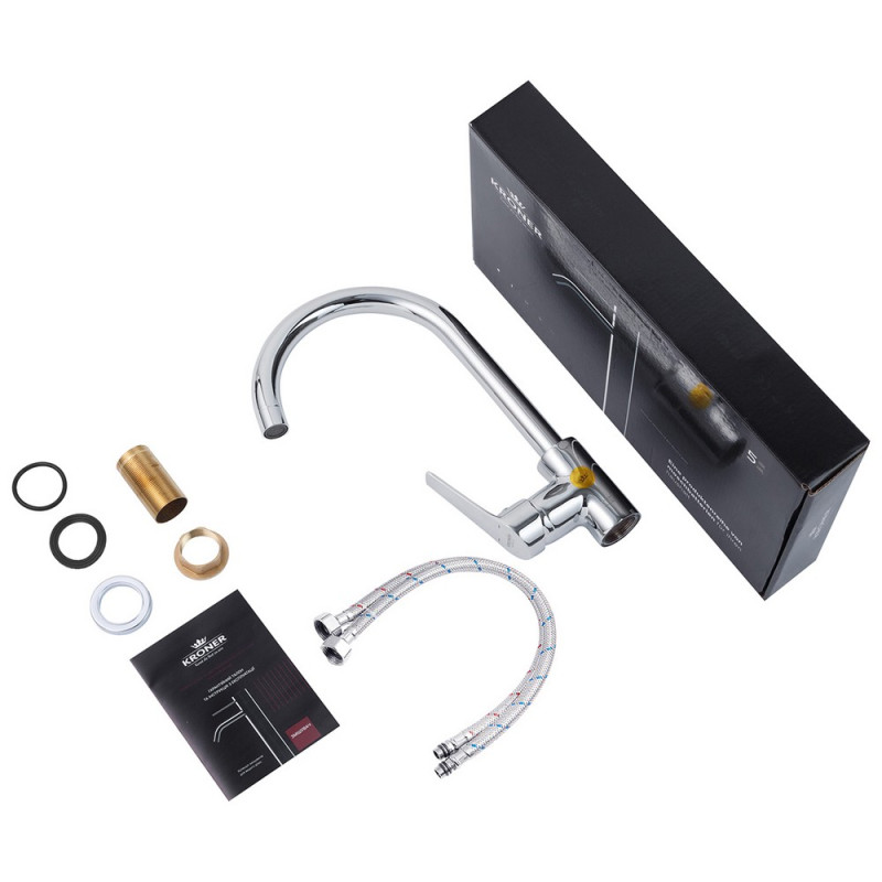 Змішувач для кухні Kroner KRP Hagen - C030 - це ідеальне поєднання стилю, функціональності та надійності. Його корпус виготовлений з високоякісної латуні та покритий хромованим шаром, якийне тільки надає йому первісного блиску, але й гарантує тривалий термін служби без втрати зовнішнього вигляду.