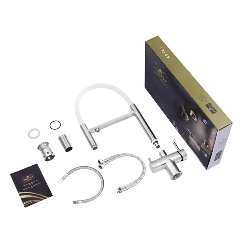 Змішувач для кухні Kroner KRP Klassisch-ESG03815WHI під фільтр нержавіюча сталь/білий CV027935