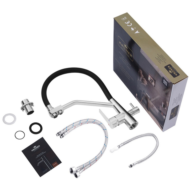 Змішувач для кухні Kroner KRP Klassisch-ESG03817BLK під фільтр нержавіюча сталь/чорний CV027936