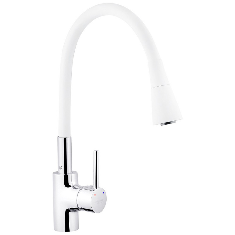 Змішувач для кухні Kroner KRP Kuche-C031WHI з гнучким виливом хром/білий