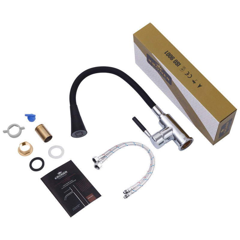 Змішувач для кухні Kroner KRP Kuche-C132BLK з гнучким виливом хром/чорний CV033126
