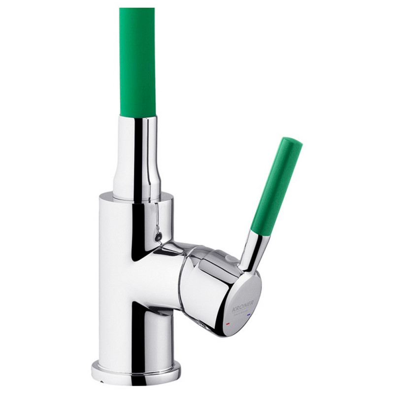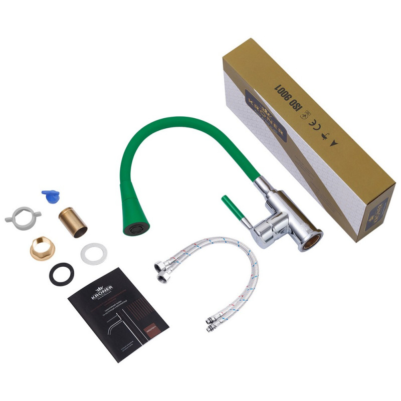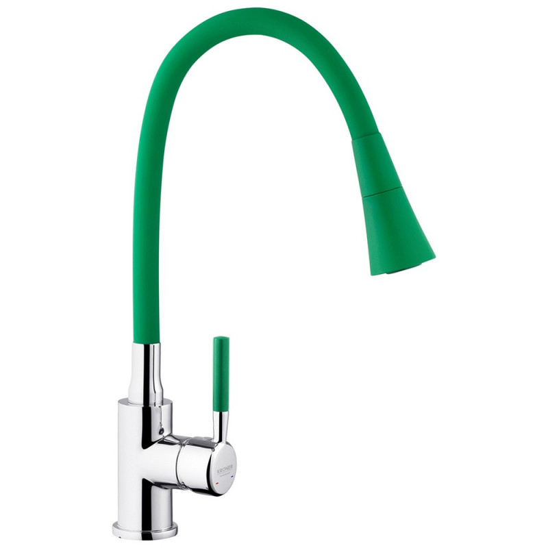 Змішувач для кухні Kroner KRP Kuche-C132GRN з гнучким виливом хром/зелений CV033130