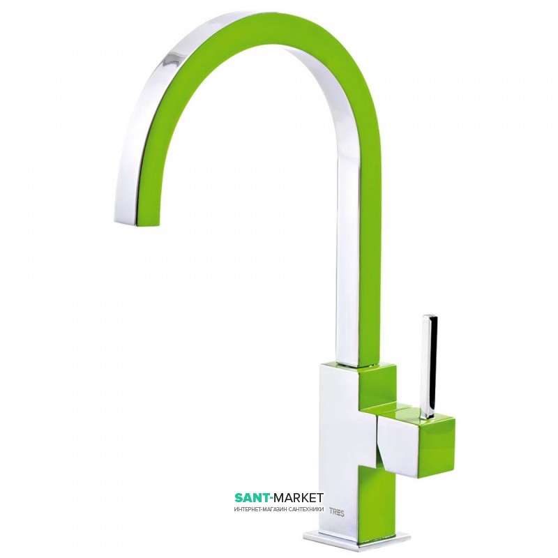 1) Змішувач для кухні Tres Top Tres colors змішувач зелений / хром