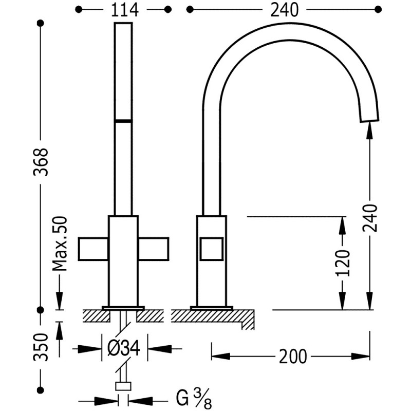 Змішувач для кухні Tres Top-Tres двухвентильний з виливом 22х22 мм хром