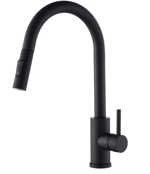 Змішувач для кухні VBI Flusso одноважільний з висувною лійкою чорний VBI-055000BL