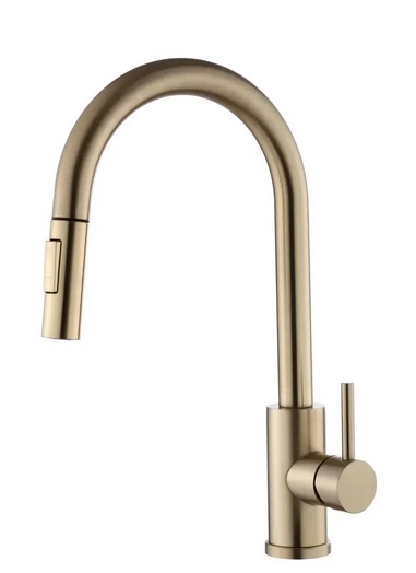 Змішувач для кухні VBI Flusso одноважільний з висувною лійкою матове золото VBI-055000BG
