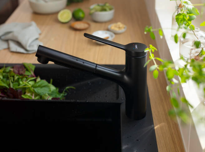 Змішувач для кухні з висувною лійкою Hansgrohe Zesis M33 150 одноважільний чорний матовий 74800670