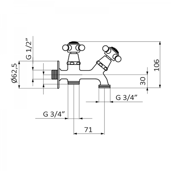 Змішувач для пральної машини GRB Cocinas двухвентильний на 2 виходи хром 80915800