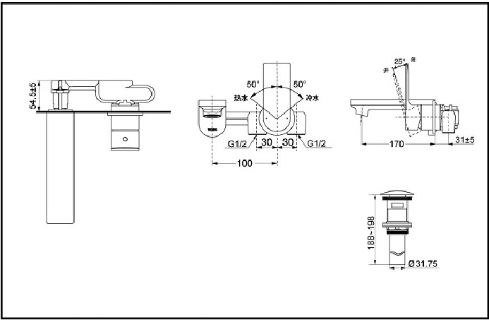 Змішувач для раковіниTOTO Contemporary настінний на 2 отвори змішувач хром