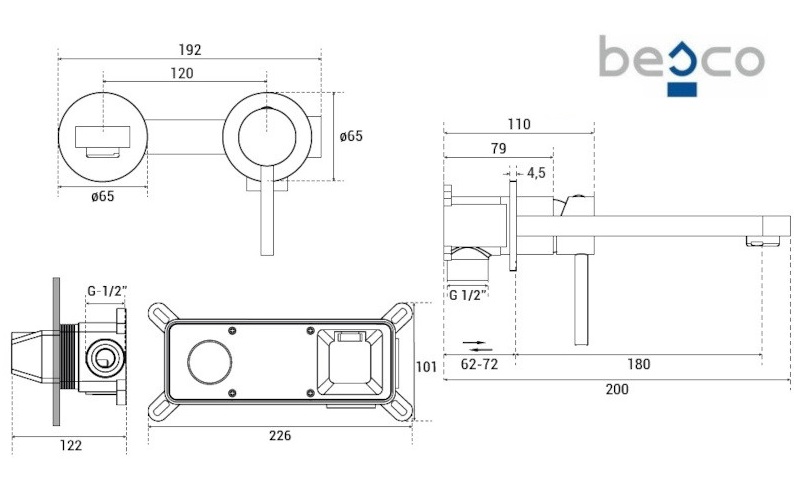 Змішувач для раковини Besco Decco настінний одноважільний хром BU-DS-CZ
