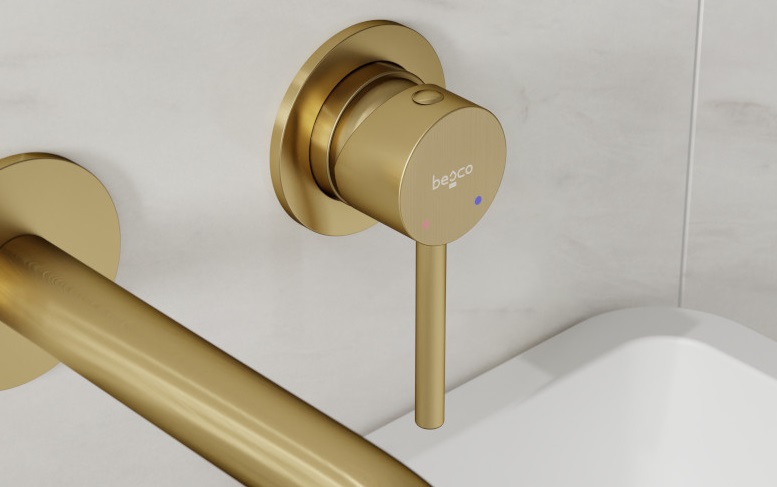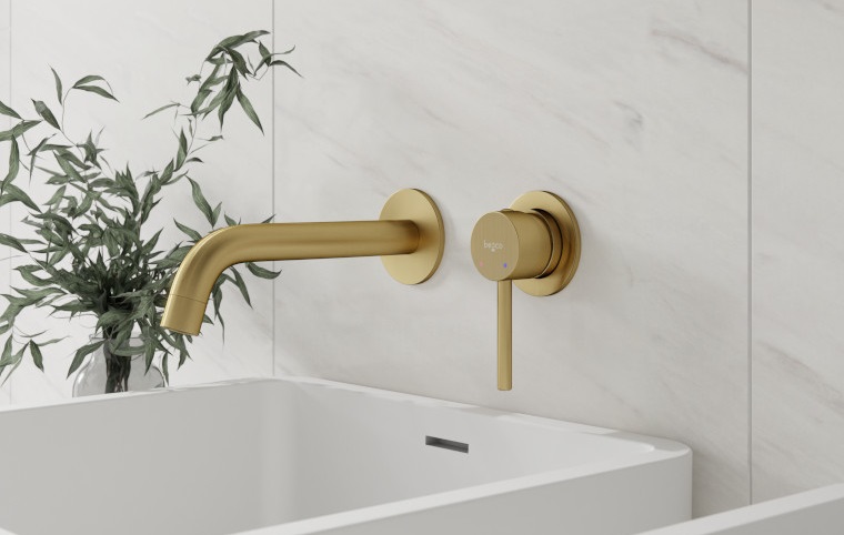 Змішувач для раковини Besco Illusion одноважільний настінний золото BU-IS-ZL