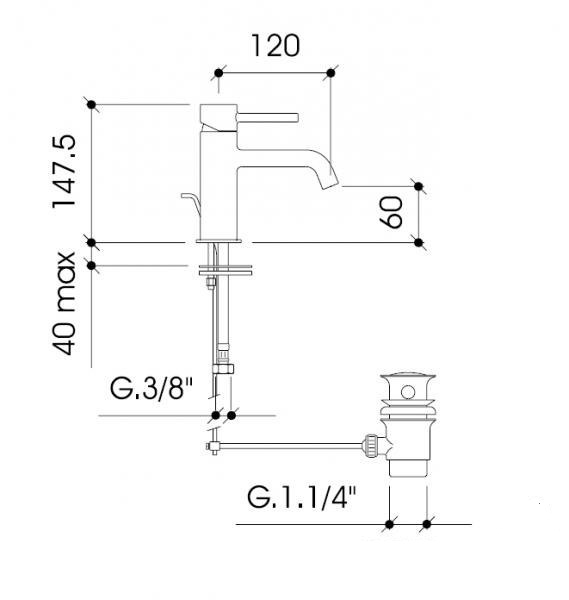 Змішувач для раковини Bonomi Trenta 9 одноважільний з донним клапаном хром 303000/F