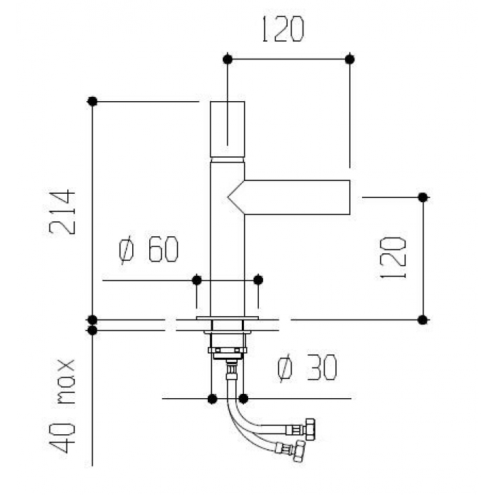 - Комплектність: змішувач для умивальника, шланги підключення