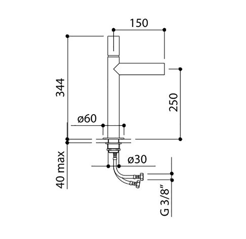 Змішувач для умивальника Tube , виробництва фабрики Bonomi (Італія), виготовлений з латуні з покриттям хром (нанесення за допомогою гальванізації). Являє собою беззаперечну якість в поєднанні з елітним зовнішнім виглядом. Дана модель призначена для умивальника. привиготовленні змішувача використовується керамічний картридж. Змішувач для умивальника укомплектований донним клапаном, висота виливу 250 мм від умивальника, довжина виливу 150 мм. Через висоти можливо використовувати для накладних умивальником.
