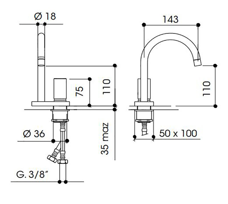 - Підведення: G ⅜