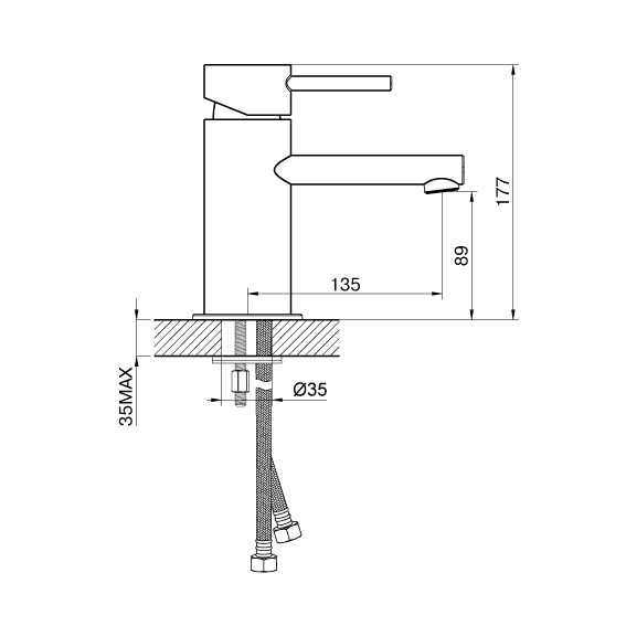 Гнучке підведення води довжина шлангів 30 см, гайка 1/2 дюйма