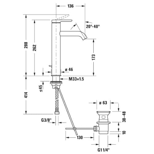 1) Змішувач для раковини Duravit C.1 змішувач з донним клапаном хром