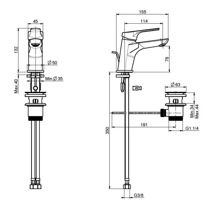 - Довжина виливу: 114 мм