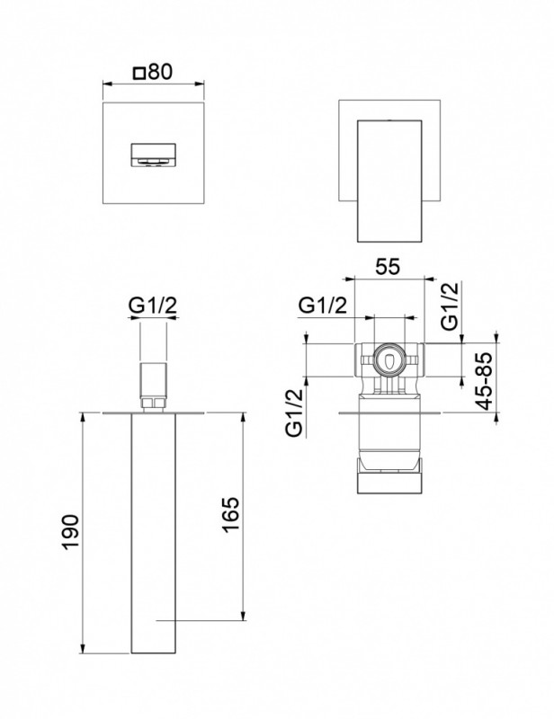- Встановлюється зі стіни на 2 отвори прихованого монтажу