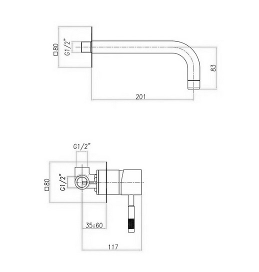- Встановлюється зі стіни на 2 отвори прихованого монтажу