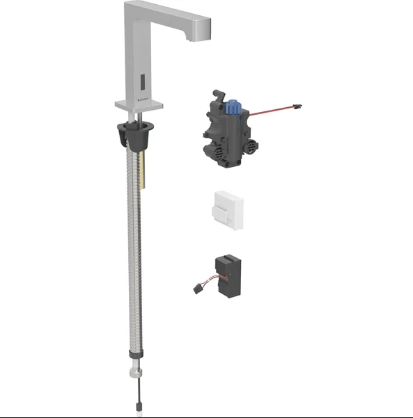 - Для монтажу в монтажні елементи Geberit для умивальника, електронний вертикальний змішувач з функціональним блоком прихованого монтажу