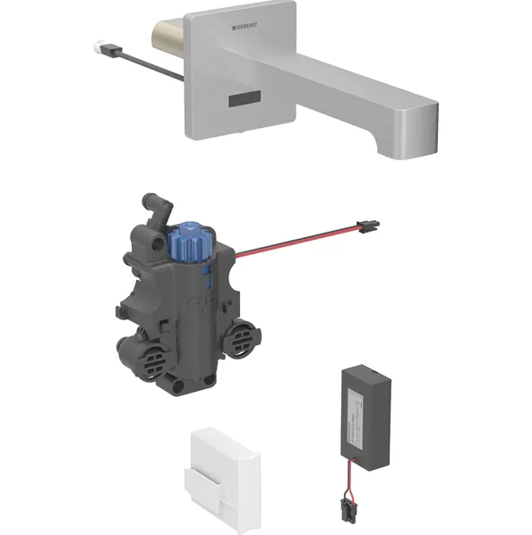 - Для монтажу в монтажні елементи Geberit для умивальника, електронний змішувач, що вбудовується в стіну, з функціональним блоком прихованого монтажу