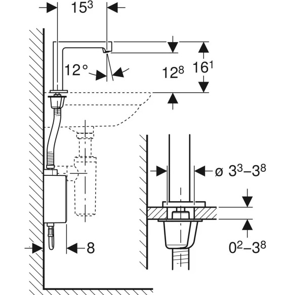Змішувач для раковини Geberit Brenta електронний з термостатом харчування від батареї хром