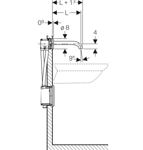 Змішувач для раковини Geberit Piave електронний з термостатом харчування від батареї хром 116.288.21.1