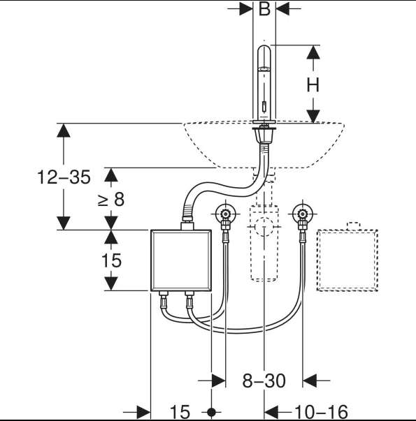 - Можливість провідного з'єднання з Geberit Gateway через перетворювач GEBUS