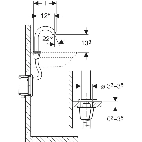- Для монтажу в монтажний комплект Geberit для електронних змішувачів для умивальника, вертикальний монтаж, з функціональним блоком прихованого монтажу