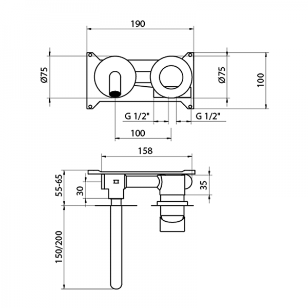 Змішувач для раковини GRB Aura настінний одновентільний хром 75535750