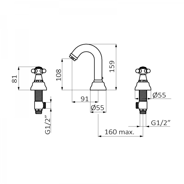 1) Змішувач для раковини GRB Classique двухвентильний з донним клапаном Pop-Up хром